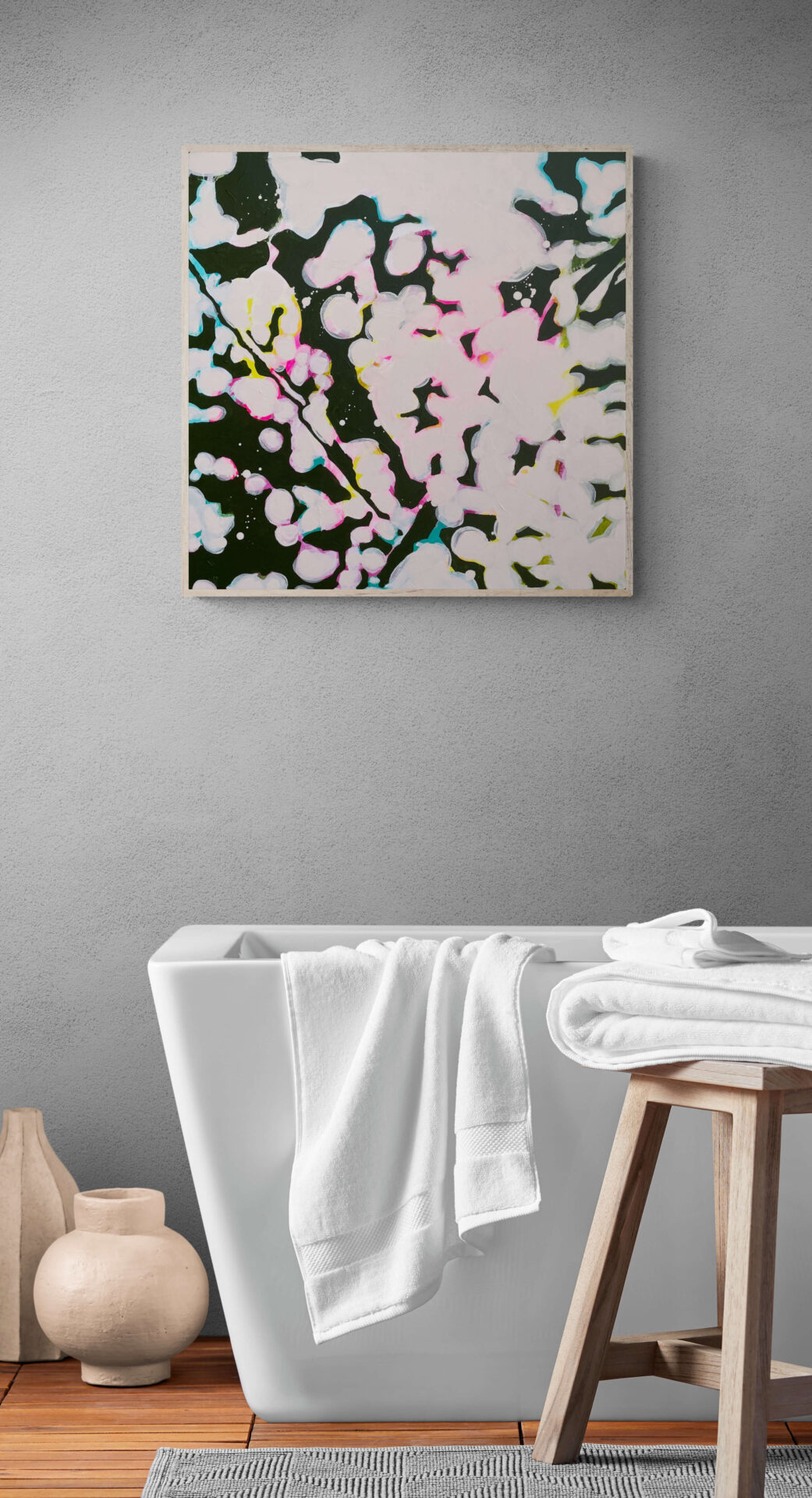 “Under the Rainbow” series marks the beginning of the “Painting Light” collection. Imagine lying beneath a tree, watching as light fragments and breaks into raw rainbow colors. Abstracted leaves and branches intertwine and dance with the light, creating a mesmerizing interplay of color and form.