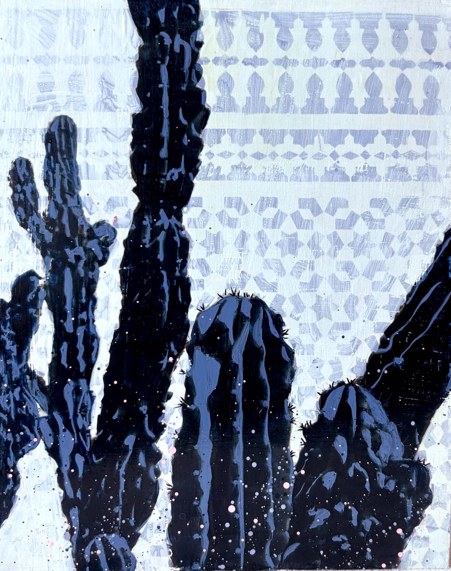 Where Desert Meets Sky is a mini artwork from Fusion Realms collection, which explores the harmony between nature and heritage. Lush botanicals intertwine with intricate Middle Eastern patterns, creating a dreamlike landscape where organic and geometric elements merge. Through rich textures and vibrant contrasts, it invites reflection on connection and identity.